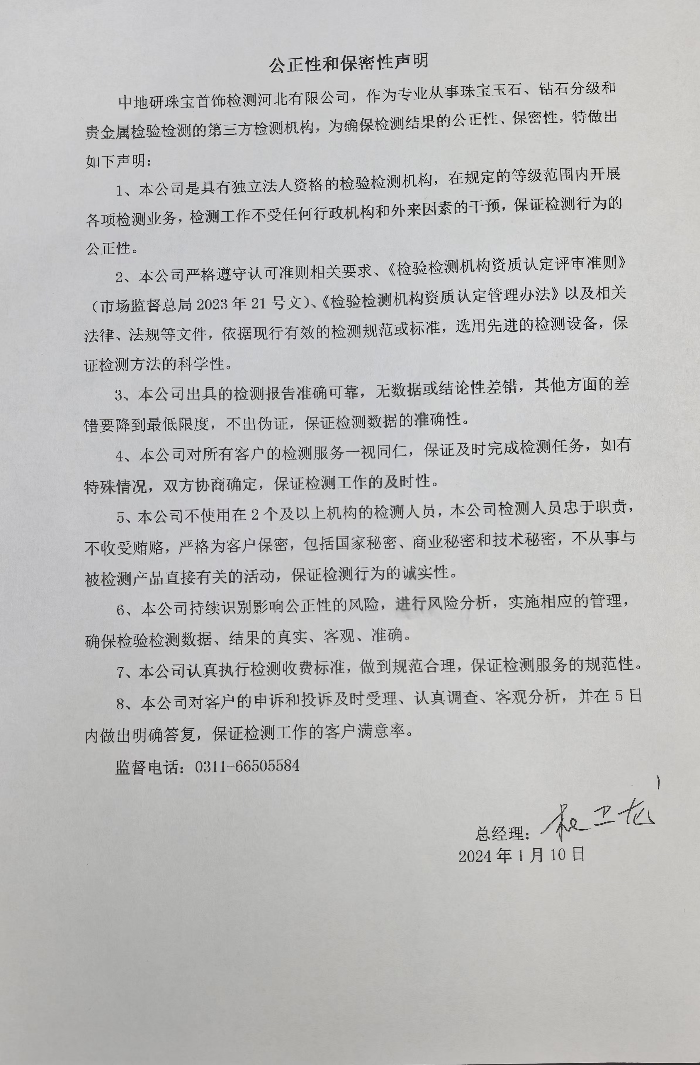 公正性和保密性声明